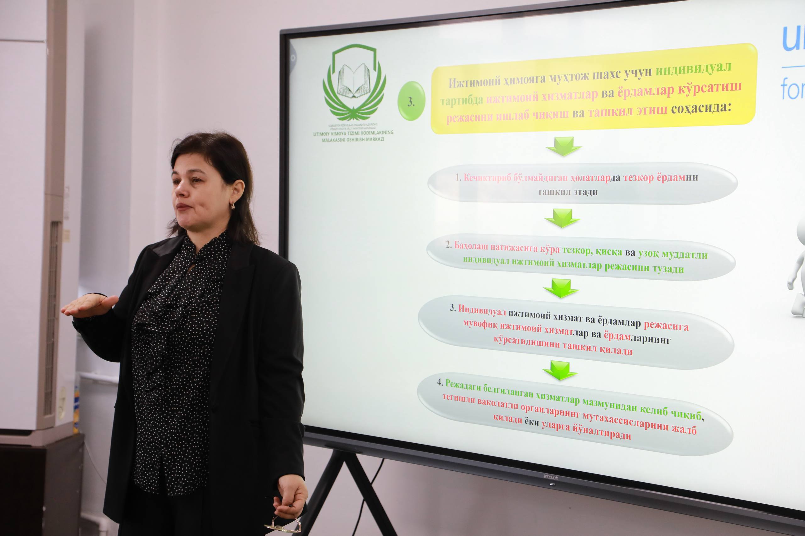 Trening ijtimoiy himoya sohasida kundalik faoliyatda uchraydigan real vaziyatlar, keys-menejment amaliyoti hamda milliy standartlarni chuqur o‘rganishga qaratilgan. Mashg‘ulotlar davomida nazariya va amaliyot uyg‘unlashgan holda olib borilmoqda.